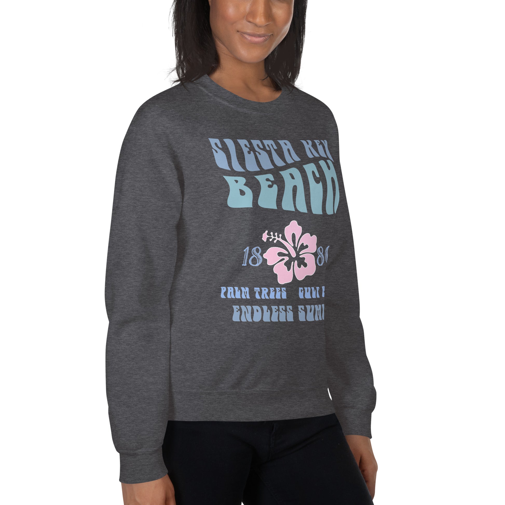 Siesta Key Front Print Hibiscus Vintage Style Sweatshirt Unisex